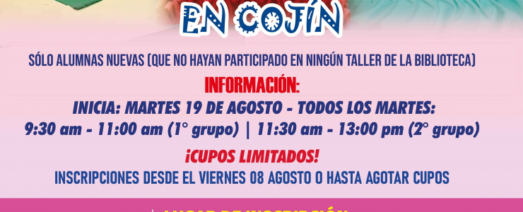 Atención Tenemos un nuevo tallerTALLER DRAPEADO EN COJÍNSolo para quienes no ha realizado ningún taller en la Biblioteca.Inicio del...