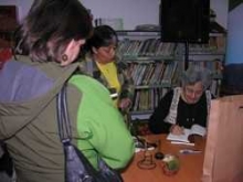 Con esa frase inició la presentación de su nuevo libro la escritora local María Isabel Quintana, el que se denomina Vivir en Puerto Aysén, en donde rescata la vida en los inicios de la ciudad puerto y que fue publicado gracias al concurso Escrituras a la memoria del Fondo del Libro y la Lectura. Haber lanzado este libro acá era mi sueño porque los libros tienen que volver a donde pertenecen; este libro es sobre Puerto Aysén, yo viví toda mi vida aquí por lo que incluso mis propias vivencias están dentro de él, a lo que se suma una investigación histórica que se mezcla con ficción, que se refiere al desenvolvimiento de la gente dentro del pueblo.La gracias de este libro es el tono en que está escrito, que es simple y tan al alcance de toda la gente, dijo la escritora local. La actividad fue desarrollada en la Biblioteca Pública, oportunidad en la que participaron diversas autoridades de la comuna como así mismo destacados y antiguos vecinos de la localidad porteña. Muchos de los que están aquí fueron mis compañeros de curso y amigos de la infancia y es bueno compartir estas vivencias con ellos, que me acompañaron a vivirlas, destacó María Isabel Quintana. Cabe destacar que anterior al libro Vivir en Puerto Aysén, escribió El último dinosaurio y Con la muerte en la cartera, ambas obras guardan en sus hojas una serie de microcuentos, género con el que Quintana está más familiarizada. | ||