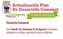 Como parte de la actualización del Plan de Desarrollo Comunal, PLADECO 2015-2020 este sábado 22 y Domingo 23 de agosto, los encuestadores visitarán su hogar.Sé parte del nuevo Plan de Desarrollo Comunal.