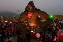 Inspirado en el nombre de una de las especies de gorila más amenazadas del mundo, Beringei es un desfile de grandes títeres mecánicos que evocan la vida y hábitat de este primate en riesgo de extinción. Un espectáculo callejero que busca concientizar y exigir la detención de su muerte en el continente africano.