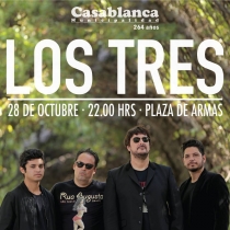 Este sábado 28 de Octubre a partir de las 22:00 horas se presentarán Los Tres, por primera vez en Casablanca, el grupo ofrecerán un inolvidable concierto, gratuito y abierto a toda la comunidad, rodeado de una feria gastronómica donde podrán disfrutar de una variada gama de comidas,...