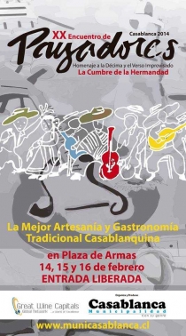 Un fin de semana pleno en cultura ofrecerá el XX Encuentro Internacional de Payadores, que tendrá lugar los días 14, 15 y 16 de febrero en la Plaza de Armas de la comuna de Casablanca. Como ya es tradición, el prestigioso evento acogerá destacadas muestras de poesía y verso improvisado...