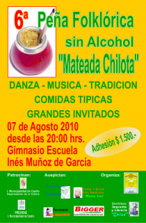 Este sábado 07 de agosto se realizará una nueva versión de la Peña denominada Mateada sin alcohol , actividad organizada por el Club Rehabilitador de Alcohólicos Chiloé Despierta.