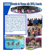 La Biblioteca Pública 235 de Concón, por tercer año realizo el boletín informativo junto a jóvenes de la escuela de verano en el taller de Publisher, en donde se instalan competencias que posibilitan conocer y trabajar con Microsoft Publisher para crear y diseñar la publicación del boletín. El día 30 de Enero la Escuela de Verano de Concón, dio por finalizado su ciclo de actividades que comenzó el 5 de enero 2015 en la Escuela Oro Negro. Esta iniciativa se realizó para llevar entretención a los niños de la comuna, realizando paseos, actividades de recreación y deporte, para que los jóvenes pudieran disfrutar de una manera distinta sus vacaciones en el mes de enero. El Alcalde de la comuna, Óscar Sumonte, comentó sobre la importancia que tiene la realización de esta escuela para los niños, señalando que: Bueno esta es una tradición que hemos mantenido en esta escuela, es una tremenda oportunidad para que los niños de nuestra comuna que no pueden salir de vacaciones y que muchas veces sus padres están trabajando tienen la ocasión de dejarlos en una buena y entretenida compañía que permite que puedan pasar estos días disfrutando, viajando y conociendo más gente, algo que nos llena de orgullo. Realizar esto junto a JUNAEB y todo el equipo de monitores, los encargados y las alianzas que se han formado para trabajar y hacer una jornada entretenida para estos niños nos hace muy feliz, así que contento de que se haya terminado de esta manera y el compromiso es que el próximo año sigamos haciendo estas jornadas de entretención para los niños de la comuna.