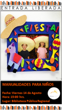 La Biblioteca Pública Regional de Atacama y el ? ?Rincón Infantil, te invitan a participar el día viernes 14 de agosto, a las 15:00 horas, al taller de manualidades "Marcos de fotos infantil". Sólo debes traer una, o varias fotos a para trabajar en la actividad.