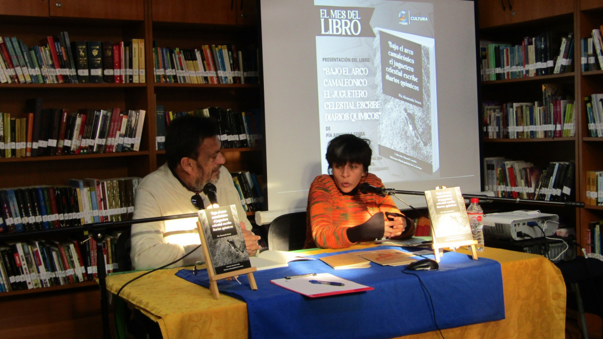 En el marco de la celebración del Mes del Libro, el día 30 de abril, la Biblioteca Municipal tuvo el placer de culminar nuestras actividades con la presentación del libro "Bajo el arco camaleónico el juguetero celestial escribe diarios químicos", de la autora Pía Ahumada Seura.