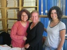 En la imagen de izquierda a derecha: Myriam Olguín Tenorio perteneciente al Equipo Eco Educación y Comunicaciones, Cristina Rojas Torres usuaria de la Biblioteca Pública Municipal 354 Guillermo francis Jones y Olga Suárez Lepe Encargada del programa memorias del Siglo XX en la Región de Coquimbo.