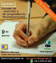 Un exclusivo curso de "Sistema de análisis y re-programación neuroescritural", abierto a toda la comunidad curicana y alrededores, se realizará en nuestra Biblioteca Tomás Guevara Silva el día 9 de marzo.