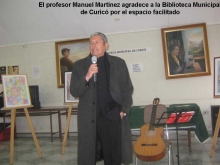 Con una excelente convocatoria se realizó el pasado viernes 29 de julio al mediodía la inauguración solemne de la exposición pictórica titulada, Una Mirada Inocente a lo Bueno y a lo Malo del profesor Manuel Martínez, oriundo de Molina, en la Biblioteca Municipal de Curicó, Tomás Guevara Silva.