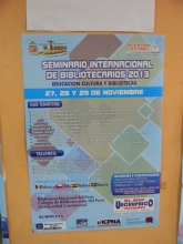Luego en el Distrito de El Tambo, en la Provincia de Huancayo, fuimos invitados a participar del "Seminario Internacional de Bibliotecarios 2013: Educación, Cultura y Bibliotecas", que se realizó entre los días 27 y 29 de noviembre y que fuera organizado por el Colegio de Bibliotecólogos del Perú y la Municipalidad Metropolitana de El Tambo en conjunto con su Casa de la Cultura y su Biblioteca. En esta ocasión, se contó con la presentación de diversas conferencias en la mañana y en la tarde talleres simultáneos realizados por los expositores internacionales ya mencionados, además de varios Bibliotecólogos provenientes de la ciudad de Lima. Los temas fueron: Tecnología, Gestión, Servicios, Planeamiento bibliotecario; también hubo presentación de libros y conclusiones. En nuestro caso en particular, dimos la conferencia: Bibliotecas Públicas de Chile con énfasis en la gestión de la Biblioteca Pública Municipal de Doñihue y el Taller "Gestión participativa en la Biblioteca Pública" donde participaron 32 personas preferentemente ligadas a Bibliotecas Escolares (28), dos universitarias y dos públicas.