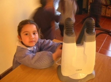Hoy miércoles nuestra Biblioteca se llenó con la alegría de los pequeños que asisten cada semana a su jornada de Fomento Lector. No sólo compartimos lectura de libros, si no también, a veces, nos permitimos dinamizar y exhibirles cuentos clásicos que están en Youtube. En esta ocasión, vimos el Patito Feo, bajo la mirada atenta de cada uno de los asistentes y de las tías que les acompañan. Sin embargo, hoy les teníamos una sorpresa especial: hace un tiempo recibimos un regalo procedente de Noruega, destinado para los niños que llegan hasta nuestra Biblioteca: se trata de un secador de zapatos, que fue probado hoy por los destinatario y hace unas semanas habíamos estrenado con las señoras de los cursos de computación. Todo un acierto y una delicadeza de la Bibliotecóloga Gloria Olivares de Hjellbrekke, residente en Noruega, quien se imaginó a nuestros niños haciendo uso de este aparato, novedoso para todos nosotros. Aclaramos que con Gloria no nos conocemos personalmente, sin embargo, el gremio bibliotecario es universal y en esto también está involucrada la Bibliotecóloga Olga Sotomayor de Santiago, quien tuvo a bien guardar el regalo por largos meses, hasta que pudimos ir en su búsqueda. Desde esta tribuna agradecemos a Gloria su gesto generoso, los niños se han maravillado, aunque más los adultos que han podido apreciar las bondades de este regalo.