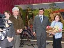 Angharad Gutmann, Coord. regional de Biblioteca Públicas, Alejandro Oyarzún, Alcalde (S) y Luis Gómez, Pdte. Rotary Club Frutillar, entregan Distinción de Mejor Socia Lectora Adulta 2009 a Silvia Aubel Araneda