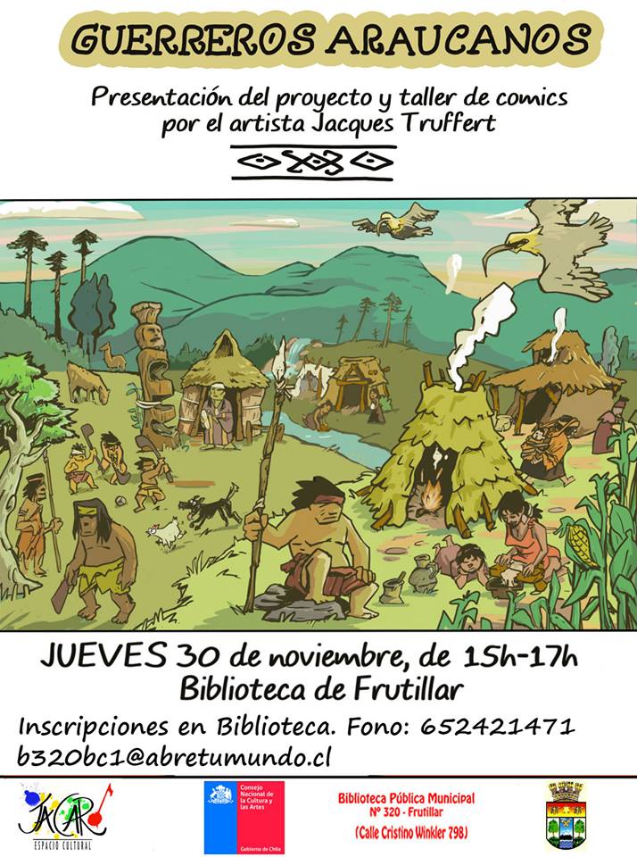 El Artista Visual y Profesor de Artes Jacques Truffert, realizará el taller de comics y presentación del proyecto "Guerreros Araucanos" en la Biblioteca el jueves 30 de noviembre desde las 15.00 hrs.