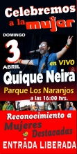 Celebraremos a La Mujer este Domingo 3 de Abril en el Parque Los Naranjos, donde se entregaran reconocimientos a Mujeres Destacadas de la Comuna, tendremos la excelente presentación del Orfeón Municipal y el Gran show de Quique Neira.