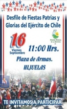 El día viernes 16 de septiembre, a las 11:00 Hrs., se realizará en la Plaza de Armas de la comuna de Hijuelas , el Desfile de Fiestas Patrias en Honor a las Glorias del Ejército de Chile.