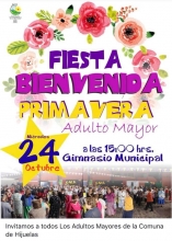 El día miércoles 24 de octubre 2018, desde las 15:00 horas en el Gimnasio Municipal de Hijuelas, se realizará la Fiesta Bienvenida Primavera con todos los Adultos Mayores de la comuna invitados.