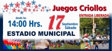 Entretenidos Juegos Criollos a realizarse el día sábado 17 de septiembre 2016, desde las 14:00 horas, en el Estadio Municipal.