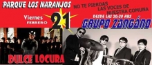 Continuando con las actividades del Verano entretenido 2014, el día viernes 21 de febrero, desde las 20:30 horas se presenta en El Parque los Naranjos, El Grupo Zángano, además del Grupo Dulce Locura.