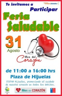 El día lunes 31 de agosto desde las 11:00 hasta las 16:00 horas el CESFAM Hijuelas realizó en La Plaza de la comuna, una Feria Saludable, promoviendo el cuidado de nuestro corazón en todos los ámbitos.
