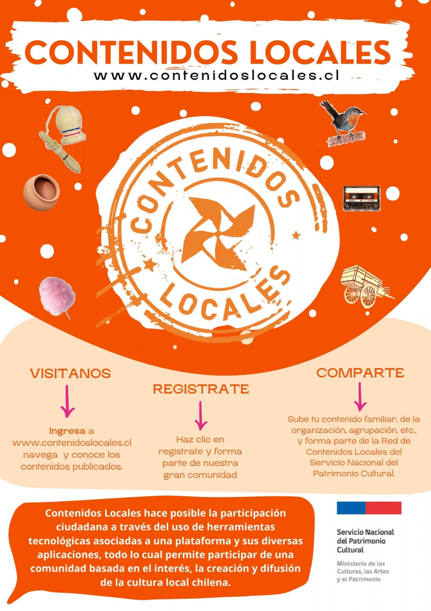 Un Contenido Local es una expresión cultural, artística o patrimonial, registrada por los habitantes de cada territorio bajo sus propios criterios estéticos y publicados en formato digital en www.contenidoslocales.cl