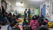 Niños y niñas de 3 a 5 años estuvieron muy atentos y atentas a las historias que se les relataron. La experiencia se realizó con Kamishibai y cuentos clásicos, así como también se canta y baila con los niños y niñas.