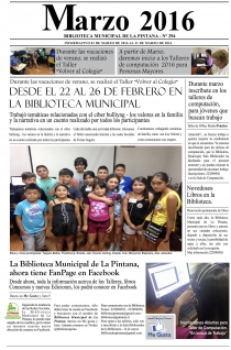 La Biblioteca Pública N° 294, realizó desde el 22 al 26 de febrero, un taller de computación "Volviendo al colegio año 2016", a niños de 08 a 14 años de edad, siendo su principal objetivo, desarrollar sus capacidades intelectuales, artísticas y sociales, preparándolos para hacer uso de la...