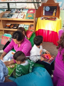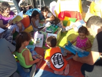 Biblioteca Pública de La Pintana con su Bibliomóvil Pintanino, en el Parque de la Felicidad, fomentando la lectura.