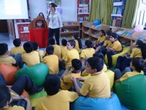 Nuestra Biblioteca, dentro de su gran cantidad de actividades dirigidas a los vecinos y vecinas de la comuna, realizará una vez a la semana el CUENTA CUENTOS, que va dirigido a los estudiantes de la comuna, en esta ocasión Alumnos de 4° año básico del Liceo Violeta Parra, presenciaron el Cuento "...