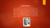HERMANN HESSE2 de julio de 1877- 9 de agosto de 1962 Fue un buscador durante toda su vida. Lo demuestra no sólo su gran obra poética, que en 1946 le hizo merecedor del Premio Nobel, Hesse pasó sus años de juventud en el ambiente de la familia, que le marcaron y que se reflejan en muchos...