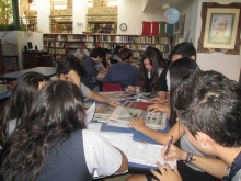 Hoy visitó la Biblioteca de Los Andes el 3° A, acompañados del profesor José Ramón Toro . Los jóvenes conocieron la sala de consulta y la hemeroteca, en la que buscaron información de los diarios antiguos que están archivados. También visitaron la Exposición de Fotografías de Gabriela Mistral.