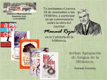 En el marco de los 120 años del nacimiento del escritor Manuel Rojas, la Biblioteca junto a su Agrupación de amigos invitan a un conversatorio en la cafetería este jueves 24 de Noviembre, a las 19:00 horas. En esta ocasión se comentará sobre su biografía, las obras literarias más conocidas y sus poemas, su estadía en Los Andes y datos anecdóticos de su vida. La entrada es liberada y para todo público.