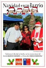 La biblioteca municipal junto a su agrupación de amigos, asistieron a la celebración "Navidad en el barrrio" , organizada por el Servicio Nacional para la prevención y rehabilitación del consumo de drogas y alcohol y el alcalde de Los Andes, Mauricio Fernando Navarro Salinas realizada en el sector Alonso de Ercilla, Cacique Vitacura y René Schneider . En esta celebración colaboraron entusiastamente nuestros amigos Carmen Ramos Beiza, y Belén Neyra, que entretuvieron a los niños con lindos cuentos, y el viejito pascuero Humberto E Cortes Folch.