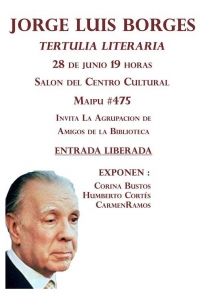 La Agrupación de Amigos de la Biblioteca tiene el agrado de invitar a una entretenida conversación sobre el escritor Jorge Luis Borges, en la que se comentará su vida y producción literaria. La entrada es liberada y para todo público.