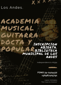 Academia Musical Guitarra docta y popularProfesor: Cristopher Muñoz Ulloa.Esta academia musical consiste en un aprendizajes de nivel superior en donde el alumno aprenderá tanto lo instrumental como lo teórico.El taller se impartirá desde el mes de Abril hasta Diciembre. El alumno podrá elegir:...