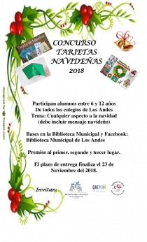 Con motivo del acercamiento de la Navidad, fecha tan importante para la cultura occidental, y con organización del Daem de Los Andes, la Biblioteca Municipal y la Agrupación de Amigos de la Biblioteca, invitamos a los alumnos de Enseñanza Básica a participar en la 9ª versión del concurso "...