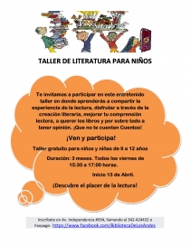 Te invitamos a participar en este entretenido taller donde aprenderás a compartir la experiencia de la lectura, disfrutar a través de la creacion literaria, mejorar tu comprensión lectora, a querer los libros y sobre todo a tener opinión.¡Que no te cuenten cuentos! Taller gratuito...