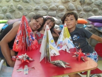 El viernes se realizó en la sala infantil el taller de arbolitos de pascua con materiales reciclados.