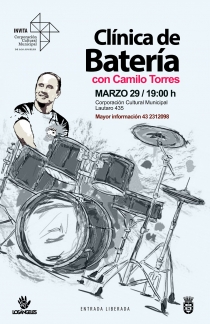 ATENCIÓN BATEROS Y BATERASTomen sus baquetas y a tocar!!el próximo 29 de marzo con Camilo TorresEn la CLÍNICA DE BATERÍA19 HORASSalón de las Artes de la CCMLALautaro 435No se necesita inscripciónEntrada Liberada.