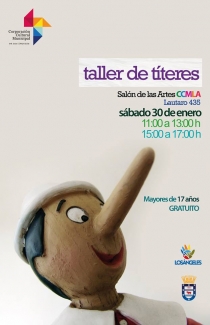 Amigos!La CCMLA ofrece a la comunidad angelina: TALLER DE TÍTERES. Actividad donde se impartirán contenidos teóricos y prácticos de esta entretenida disciplina artística. Aprenda a generar su historia, a manipular su títere y relatar aventuras y cuentos. Sábado 30 de enero / de 11 a...
