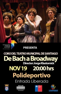 Atención amigos! Tenemos el orgullo de anunciar la presentación del CORO DEL TEATRO MUNICIPAL DE SANTIAGO, bajo la dirección de Jorge Klastornick.JUEVES 19 NOV / 20:00 HORAS / POLIDEPORTIVO / GRATUITONo pierdas la oportunidad de disfrutar con esta prestigiosa agrupación formada en abril de 1982. En...