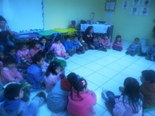 A pesar del frio dia, celebramos con muchas ganas el Dia del Libro, realizando la Hora del Cuento, con la participacion de mas de 30 niños entusiastas pertenecientes al nivel medio mayor y transicion del colegio de lenguaje Teson Minero