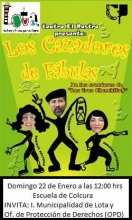 En Colcura, se realizará la OBRA DE TEATRO INFANTIL: "Los Cazadores de Fábulas", DE LA COMPAÑIA DE TEATRO EL ROSTRO, el DOMINGO 22 DE ENERO A LAS 12ºº, EN ESCUELA VALLE COLCURA