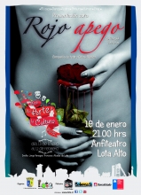 Para hoy a las 21:00 hrs. en el Anfiteatro de Lota Alto, se encuentra programada la obra Rojo Apego, de la Compañía mexicana Gelosi. La obra de Ezequiel Contreras es fiel representante del teatro tradicional de dicho país y trata de manera dramática el complejo tema del aborto.
