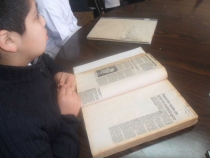 Alumnos del Colegio Santa Maria de Guadalupe se reunen en Biblioteca para ir en rescate del patrimonio local, Sindicato N° 6 y Gota de Leche, junto a su profesora Ana Maria¨Peña Mora, usando materiales, archivos de noticias de Lota