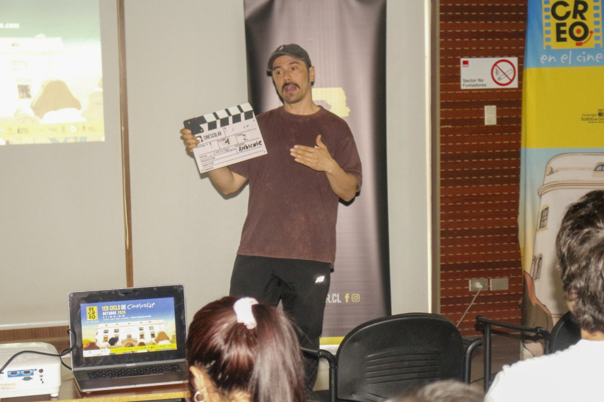 La actividad fue encabezada por el actor valdiviano Samuel González, quien presentó y comentó tres cortometrajes realizados por jóvenes del sur del país: “Ruido”, “Suyai” y “Plan X”.