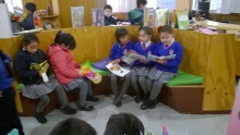 Cuentacuentos, actividad a la cual fueron invitados los niños y niñas del 2°A del Escuela Municipal "Valle de Mariquina", disfrutaron del cuento La sorpresa de Nandi de Eileen Browne, y del cuento El chacal y el erizo texto Elena Gisbert, narrado en la modalidad del Kamishibai un pequeño teatro de madera y láminas de cartón con llamativos dibujos que van construyendo una historia.
