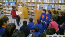 En la Biblioteca con la Hora del Cuento, invitando a los niños y niñas del 3° A de la Escuela Valle de Mariquina, los que disfrutaron con las narraciones de la Tía Mónica, a través de estas historias se introdujeron en un mundo mágico lo que les permite desarrollar su imaginación.