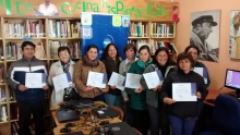 Fotografías de las Certificaciones de cursos de computación BiblioRedes en Alfabetización Digital, Word y Excel, realizados con el laboratorio Móvil y computadores de BiblioRedes, durante la semana del 23 al 26 de noviembre en la Biblioteca Municipal de Mariquina.