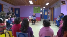 Los cuentos siguen caminando, caminando y al Jardín Infantil Manitos Creadoras de la Junta Nacional de Jardines Infantiles llegaron, los niños y niñas del Nivel Heterogéneo y Sala Cuna disfrutaron del cuento Los Sonidos adaptado por Paula Vera, los niños y niñas se deleitaron con la narración y a través de esta historia se introdujeron en un mundo mágico lo que les permite desarrollar su imaginación, además disfrutaron con el cuento Conejo y Sombrero de Verónica Álvarez, narrado en la modalidad del Kamishibai un pequeño teatro de papel y láminas de cartón con llamativos dibujos que van construyendo una historia, la que despierta la imaginación y la fantasía entre las niñas y niños. Luego se les invito a disfrutar de la caja viajera donde los niños pudieron manipular los diferentes libros que llevaba esta caja, con los cuales se maravillaron. Estos cuentos fueron narrados por la tía Mónica Flandez, voluntaria de la Biblioteca. Para la Biblioteca, llevar a cabo estas actividades es fomentar el placer por la lectura, despertando en ellos, su imaginación. Esta actividad se realizó en el Jardín Infantil Manitos Creadoras de la Junta Nacional de Jardines Infantiles, participaron 30 niños y niñas junto a sus Tías.