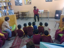 Miércoles de cuentos, las niñas y niños del Pre-Kinder A del colegio Padre Luis Beltrán, disfrutaron del cuento "Los Sonidos de la Granja" adaptado por Paula Vera, a través de esta narración los niños se introdujeron en un mundo mágico permitiéndoles desarrollar su imaginación y el placer por la lectura, además se entretuvieron con el cuento El Gato con Botas autor Charles Perrault, narrado en la modalidad Kamichibai un pequeño teatro de madera y láminas de cartón con llamativos dibujos que van construyendo una historia.